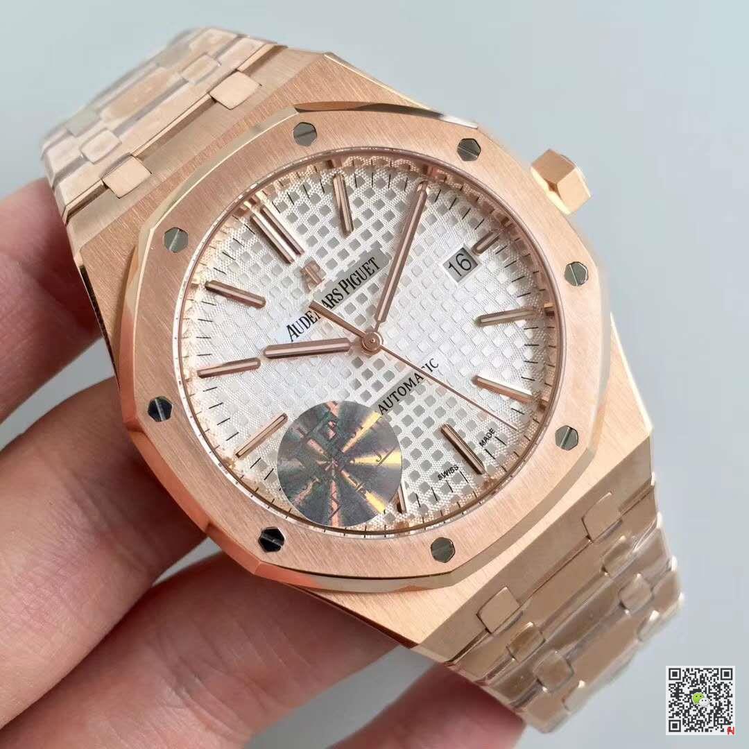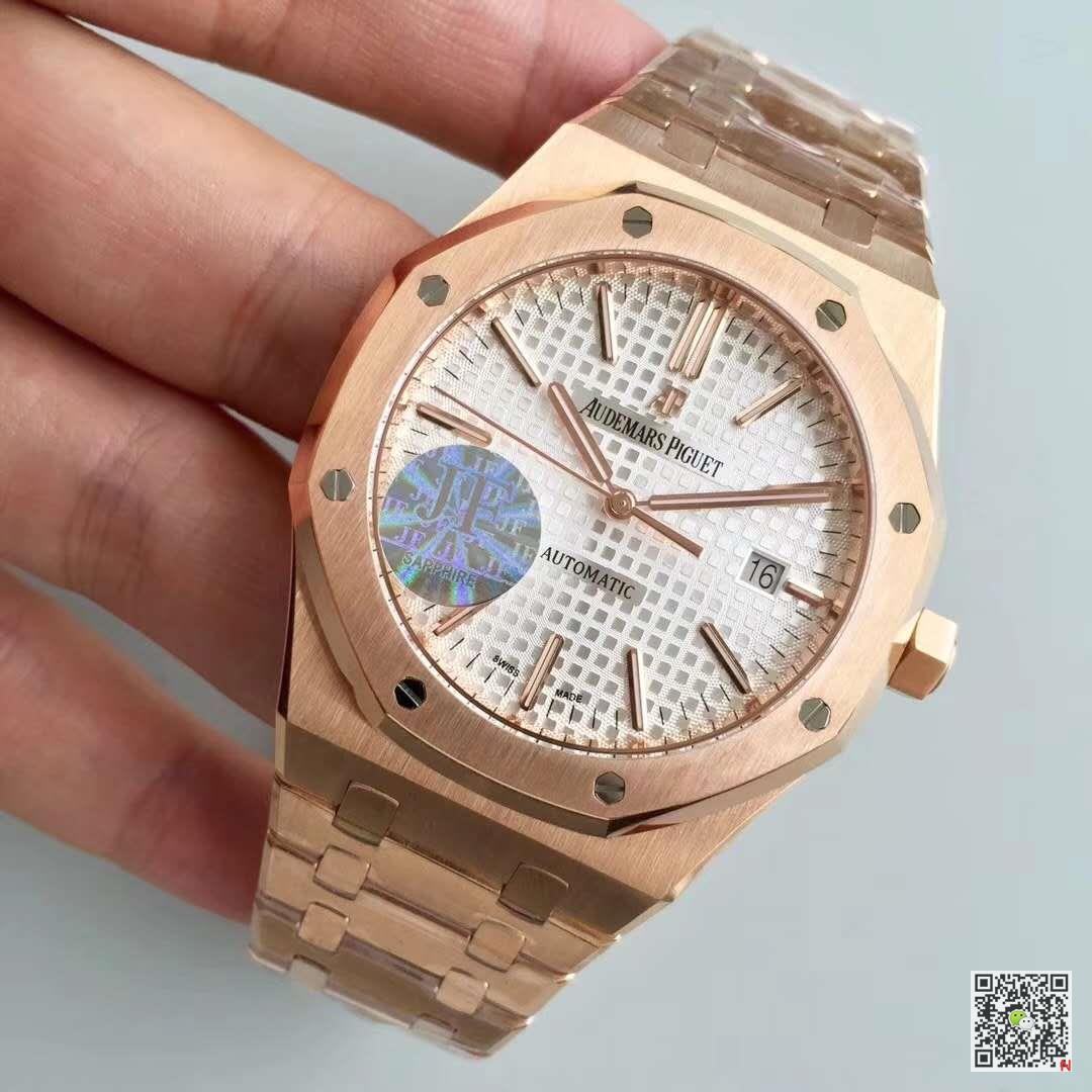 Audemars Piguet Royal Oak 15450 Rose Gold JF Factory Hot Replica Watches V5 Silver Dial