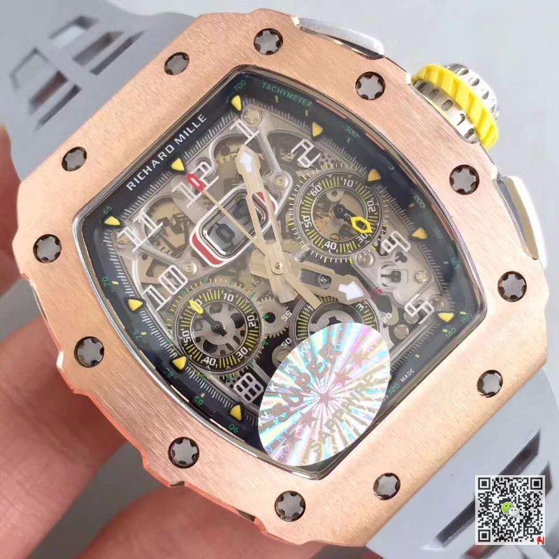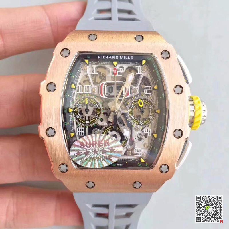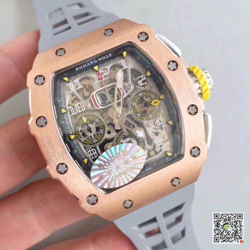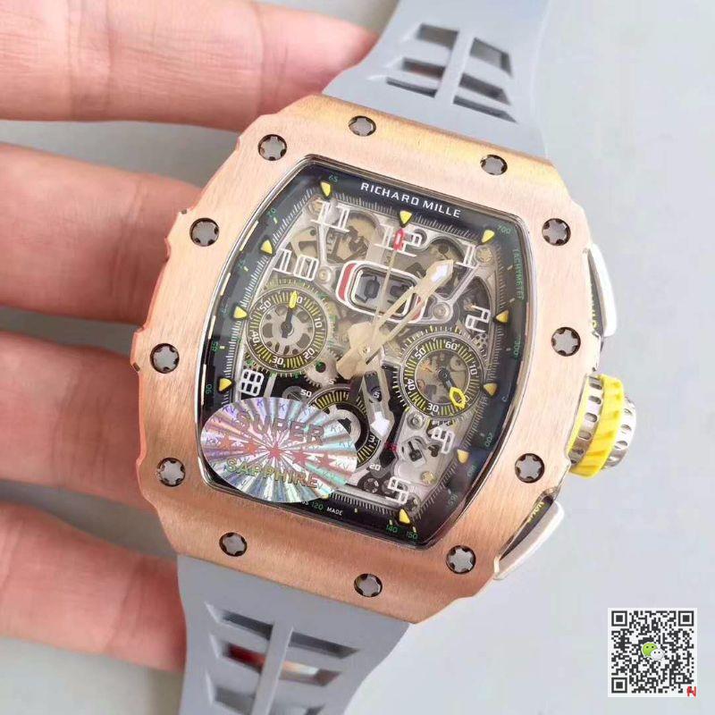 The perfect ergonomic design of KV Richard Mille RM011 series Replica Watches matches the brand’s iconic architecture in pursuit of perfection. Each component of RM 011 is an aesthetic expression of its function. The RM011 watch retains the most recognizable iconic shape, but the craftsmanship it uses is still far beyond the past. It has a finely crafted brushed surface, matched with polished chamfers, showing a sharp contrast. The chronograph button is clearly marked with functional fonts. Its design is inspired by all these optimized changes to the pedals in F1 racing cars. This RM011 adds a lot of sporty and trendy atmosphere.