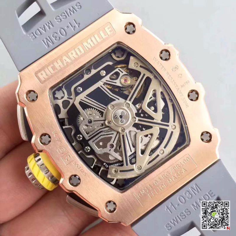 Richard Mille RM011 Felipe Massa Chronograph KV Factory Hot Replica Watches Rose Gold Skeleton Dial
